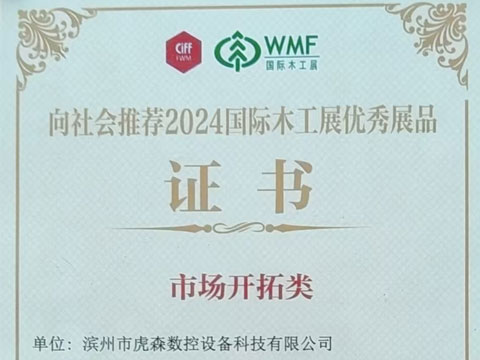 2024年9月11日-14日,CIFF上海WMF國(guó)際木工展在上海虹橋國(guó)家會(huì)展中心盛大開幕。濱州虎森數(shù)控設(shè)備科技有限公司出席參加了此次展會(huì),憑借卓越的產(chǎn)品實(shí)力和創(chuàng)新精神,在眾多參展企業(yè)中脫穎而出,榮獲優(yōu)秀展品證書。
